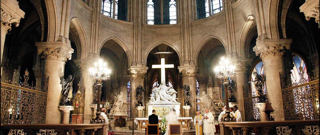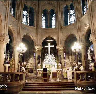 Une robe du showroom dans la Cathédrale Notre-Dame-de-Paris